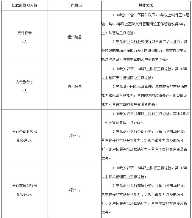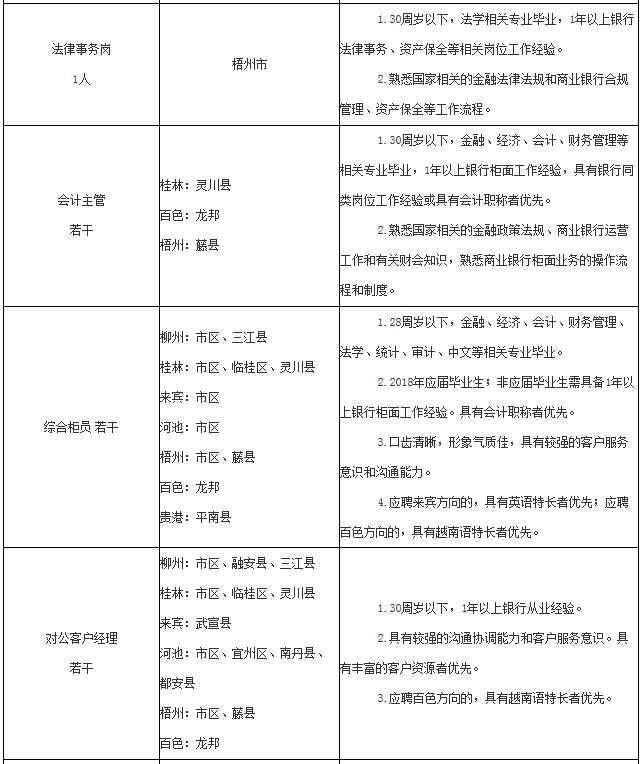 (四)除柳州市区外,其它分支行招聘原则上本地人优先。