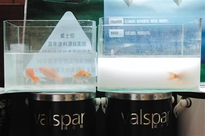 体验馆内展示的环保漆养鱼实验,让消费者更直观地感受产品品质。新京报实习生陈婉婷 摄