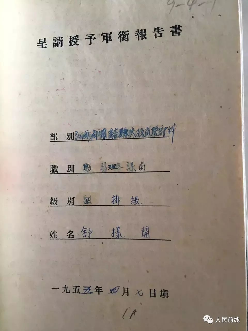 在娘胎时算命先生说这孩子五行缺火,于是母亲给尚未出生的他取了一个小名“阿火”,希望他这辈子能平安顺利。可母亲怎么也没有想到,他的孩子这辈子注定要与战火硝烟为伍。1930年出生的他家境殷实,父母经营着小镇中最大的餐馆,由于是家中的独子,从出生开始就受到全家人的关注与宠爱。1949年初夏,高中毕业的他迎来了人生的转折点。一支从北方开来的队伍走进了这座宁静的小镇,这支名为解放军的队伍希望当地的百姓出一名向导,带领部队进入赣闽交界的武夷山脉剿灭国民*党**残部。出于对国民*党**的痛恨,舒样开毛遂自荐担任解放军的向导。临走时母亲嘱咐说:“沙场凶险,务必小心,部队完成任务后就回来接手家中的生意。”就这样他放弃了少东家的舒适生活,怀着满腔的热血带着队伍走进了大山。