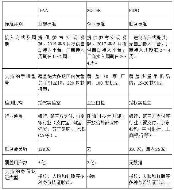 其实指纹支付标准还有一个 FIDO,在国外被认可,但在国内的存在感太弱,远远不能和 SOTER 和 IFAA 相比。