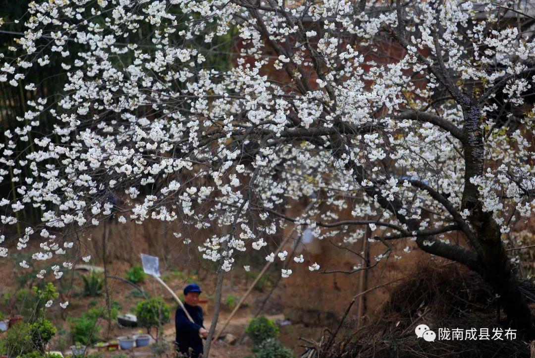 (单山村位于成县著名景点“西狭颂”东北角的高山之巅,村内有上百亩的樱桃花,以花白果甜而响誉十里八乡。单山村阡陌村田,各种林木围绕在村子周围,桃红柳绿,确是近期欣赏山村自然风光的好去处。