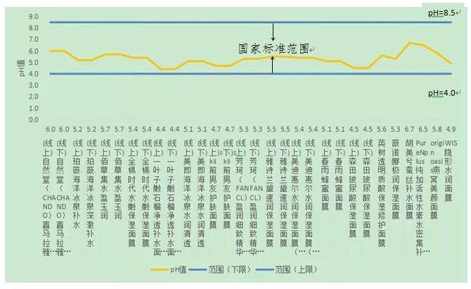 人体皮肤表面的pH值呈弱酸性,健康的东方*皮人**肤的pH值一般在4.5-6.5之间。一般愈油性的皮肤,pH值愈低,愈偏向于干性的皮肤,pH值愈高,而且偏向于碱性。皮肤的pH值呈弱酸性,可抑制皮肤表面细菌繁殖及生长。对于面膜产品,pH值一般要求在4.0-8.5范围内。本次比较试验30款面膜最高pH值为6.7,最低pH值为4.4,均在合格范围内,是安全的。