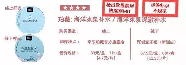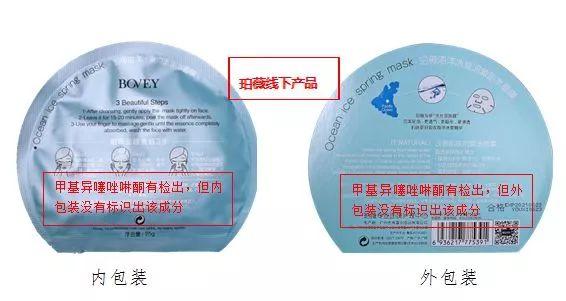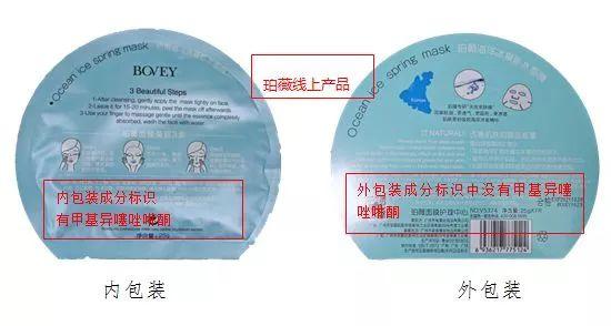 本次比较试验中,被抽到的珀薇线上产品的内外包装成分标识不一致,线下产品有检出甲基异噻唑啉酮,但标签中并没有标识,出现了标签与成分不相符的情况。