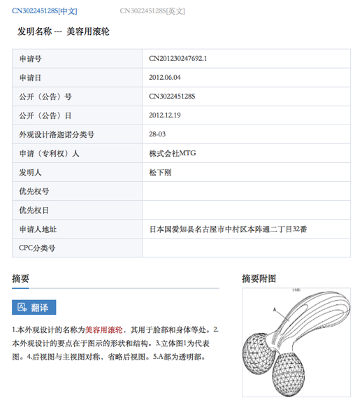 先给你一颗定心丸:ReFa 系列的产品,通过神似迪斯科球的触头,来复现“美容手法”、完成深度揉捏,这个设计确实是取得了外观设计专利的。
