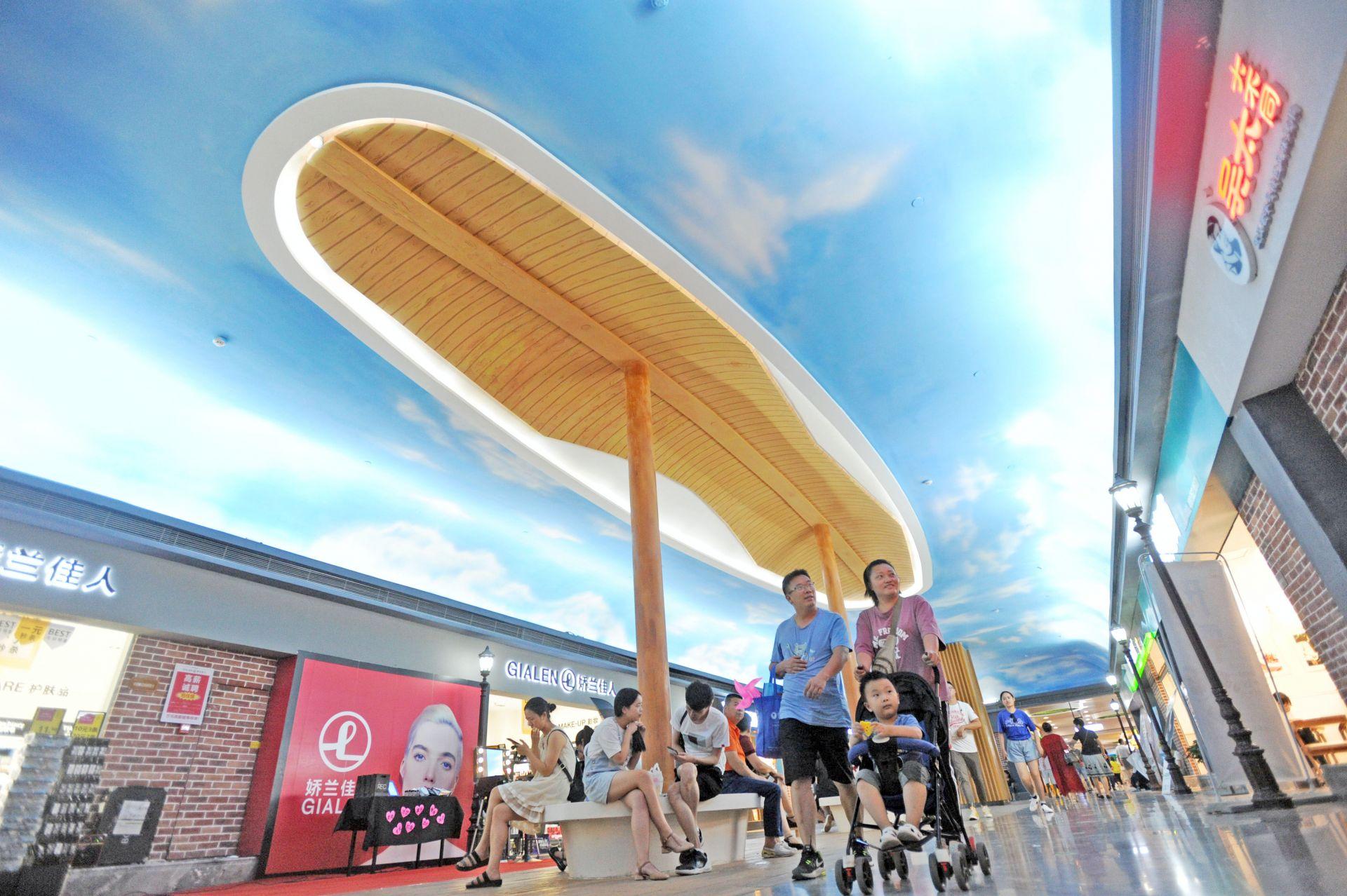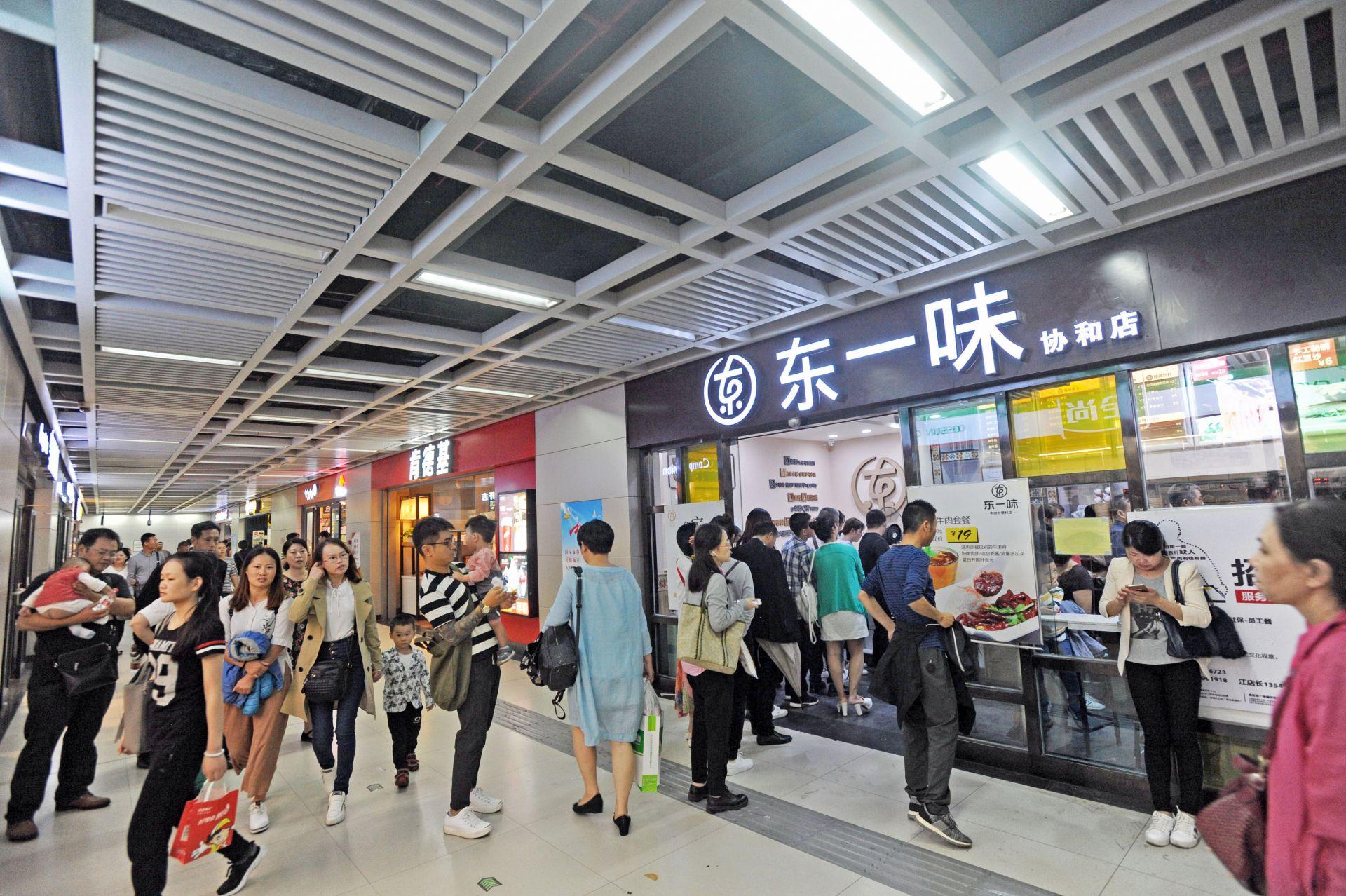 9月8日,地铁8号线徐东一路至汪家墩站商业街区,不少市民前来购物休闲。记者苗剑 摄
