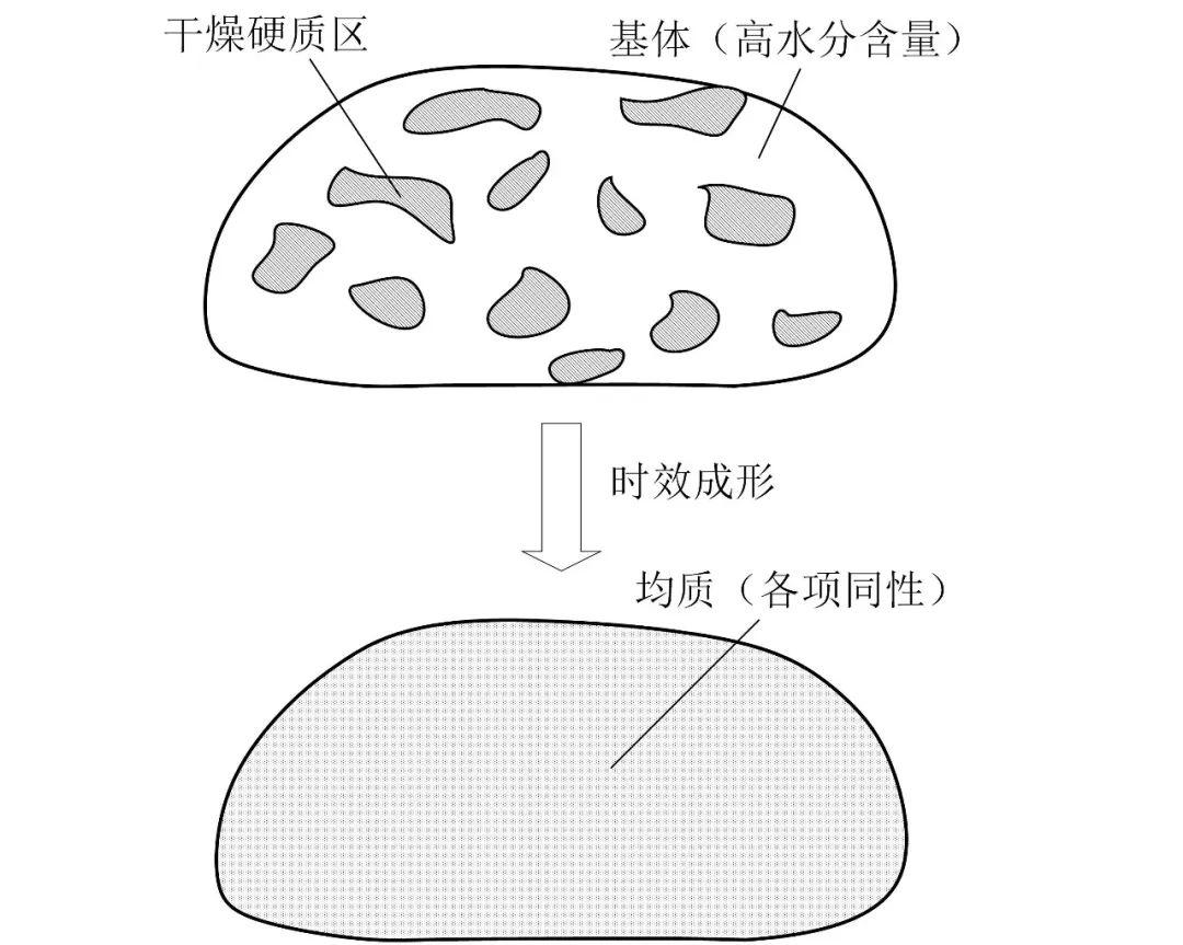 文章里称,和好面后首先形成一个粗结构面团,还不能擀面,需经过约10分钟左右的时效成形(即“饧面”),面团塑性提升,面团很快就达到细光态,之所以会这样,是因为和面过程中,水和面粉混合,面粉中蛋白质吸水形成面筋,在揉面过程中面筋相互粘连最终形成粗结构面团。由于初始揉面过程中,水分并不是均匀分布的。经过时效处理后,水分得以均匀扩散,其塑性性能大幅度提升,从而使揉面变得十分容易,很快达到细光态。
