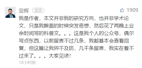 4月13日,张亚辉将这篇论文发到了自己的微信公众号上,截至15日,这篇文章的点击量已经突破十万加。而且很多人指出了文章的一些瑕疵。张亚辉说,有的问题并非他的专业领域,他不一定能回答上来,但是能获得这样的关注度他很高兴。