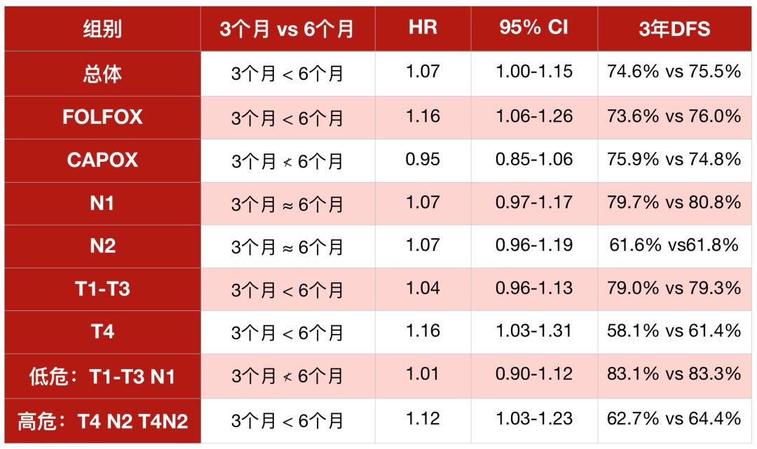 在FOLFOX方案中,6个月治疗的效果优于3个月(HR 1.16);