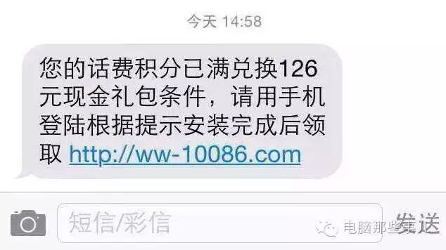 有的假网址虽然字母排列正常,乍看上去好像是正规网站,但网址中间却加了奇怪的标点符号。比如,近期常见的冒充中国移动客服10086发送的积分兑奖诈骗短信↓