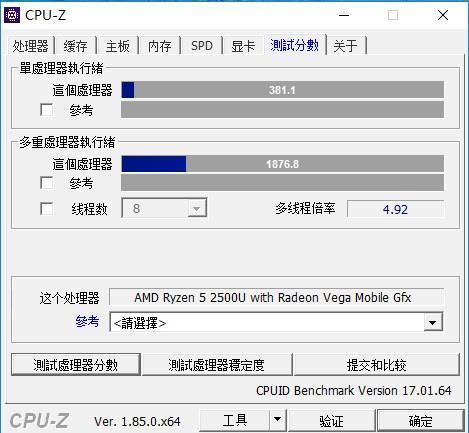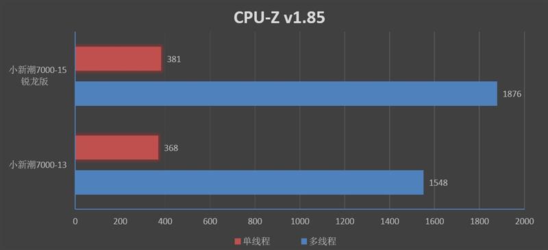 小新潮7000-15锐龙版单线程分数381,多线程成绩则为1876。