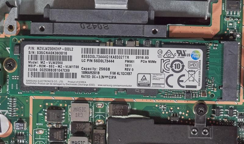 小新潮7000-15锐龙版内置了一块三星PM961 256GB PCI-E SSD,这是三星面向中高端OEM市场推出的SSD产品。
