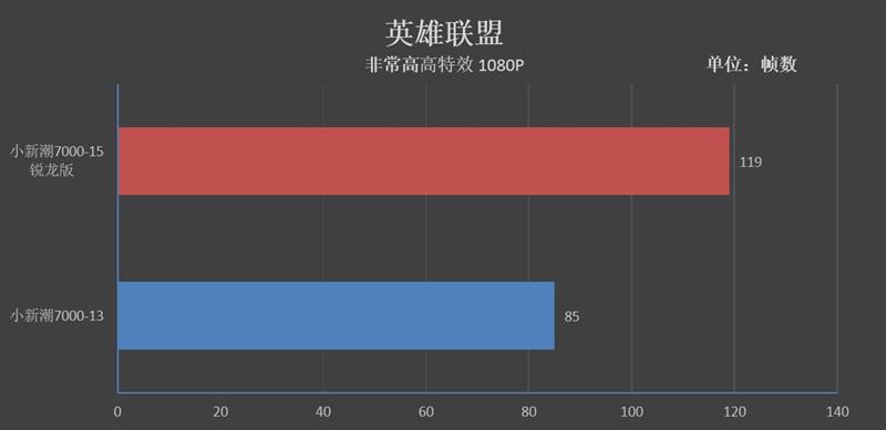 在LOL测试中,小新潮7000-15锐龙版达到了119帧,流畅度非常不错,即便实在团战时,都能够时刻稳定在60帧以上。