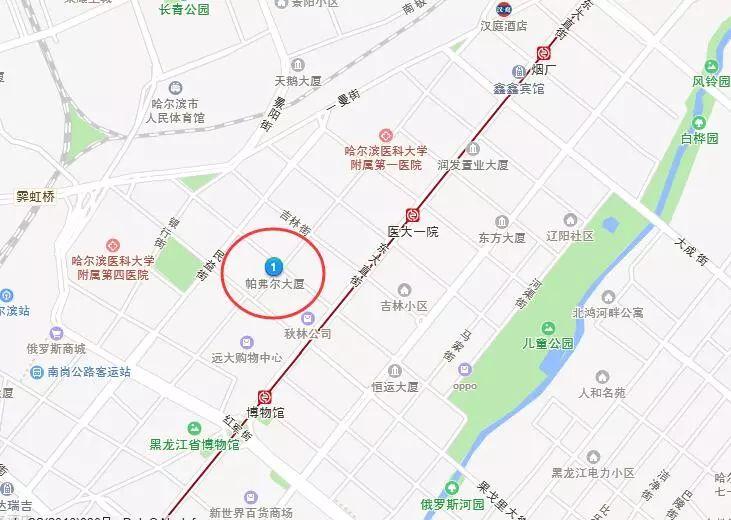 或乘坐6路、7路、13路、14路、105路、74路、8路在秋林公司站下车