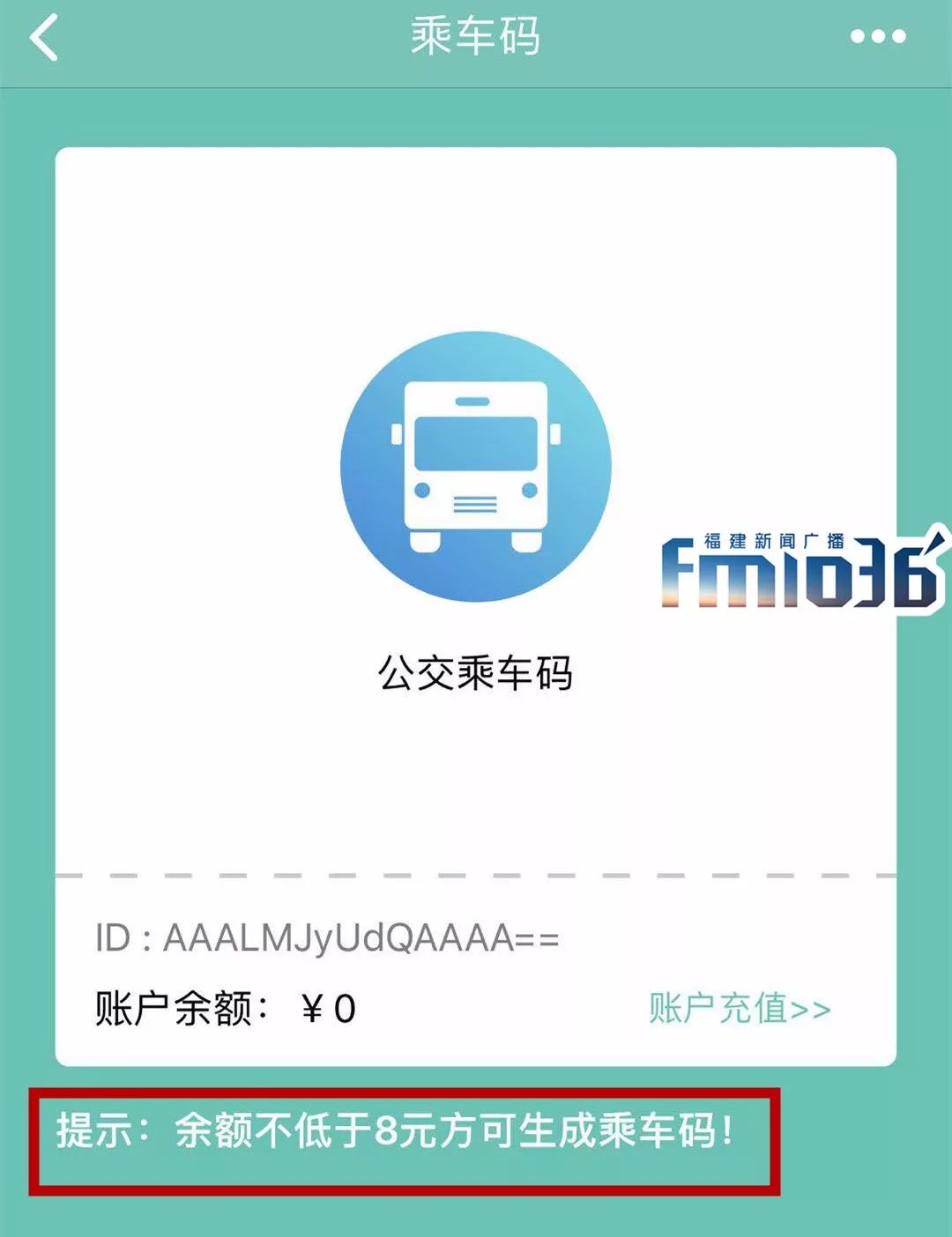 福州张女士最近*载下**了榕城通APP使用二维码乘坐公交车,乘坐几次后账户余额不足8元,结果就无法乘坐公交车了,张女士研究了一下,发现榕城通APP内提示,根据福州市区公交线路最高票价8元为标准,账户余额不足8元的,将导致无法生成公交乘车码,请保持账户余额在8元以上,而在充值页面下方,还有一行红色字体,写的是温馨提示,账户余额暂不支持退款。