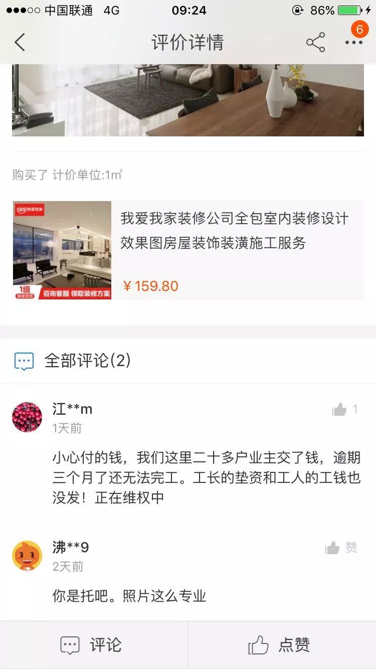 在我爱我家网天猫旗舰店中,有20多位消费者在评价中说自家装修不仅质量达不到标准,还普遍存在工程逾期的情况。装修耗时过长等出现问题时已经过了退款或给差评的时限,因此导致消费者向天猫平台维权也举步维艰。对此,天猫家装回应称在整个服务质保期内,商家提供的相关服务及售后保障如果未按时效进行,天猫将对消费者发起主动赔付并对商家追责。天猫家装相关负责人凯嗣:“针对消费者投诉情况,天猫将对商家采取扣罚款、店铺平台监管甚至关店等处罚等措施。同时,对于严重侵权行为,天猫将情况反馈到相关执法部门,积极配合,保障消费者权益”。