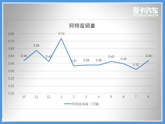 从数据上来看,阿特兹的成绩总体较为平稳。得益于新款车型的上市,车辆的销量在11月份增长明显,然而伴随着竞品提升年终优惠力度等,车辆在12月的销量稍有下滑,不过依旧能保持不错的成绩。阿特兹在2018年1月份的表现非常出色,达到0.74万辆,取得了新一年的开门红。2月份受到淡季影响,成绩较1月份有所下滑。在接下来的几个月里,阿特兹的波动不大,保持着0.40万辆左右的单月成绩。