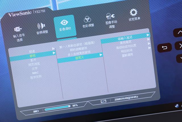 尝试了 OSD 菜单中预设的游戏模式,这理论上是针对不同的游戏使用不同的预设校准,个人举得预设的”多人在线竞技游戏“模式比较适合《CSGO》,画面暗部拉高了,暗处显亮,更容易发现埋伏。自定义模式其实就是将预设的参数开放出来让用户自己设置,这个比较花时间,花了一个小时来回改动各种参数终于调到一个自己比较满意的效果。