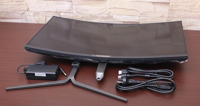 1800R 曲率的屏幕相当于半径为 1.8m 的圆所弯曲的程度,外观嘛,其实也没啥好说,从外壳到支架都是清一色的灰黑色,总体而言就是简约沉稳的风格,相比“四大金刚”的个性与张扬是完全不同的感觉。