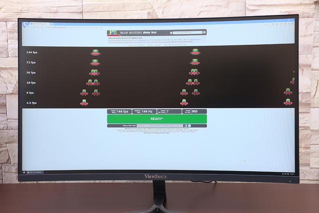 用 UFO Test 简单测了一下,开机直接就是 144Hz 了,不用手动去调。