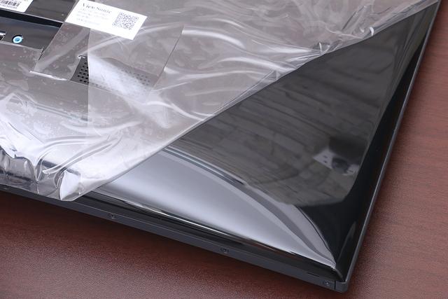 显示器背面使用高光注塑的工艺,出厂时就贴了保护膜,正如图片所见,贴得非常丑,摆明就是让你撕掉的。撕开贴膜无疑就是一指纹收集器,所幸只是背面,如果正面是这样就真的不受待见了。这里还有个地方需要吐槽,显示器支架与显示器本体链接的地方固定面积太小了,导致最大的问题就是屏幕会随着桌子一起晃动,毕竟楼主用的只是百来块的电脑桌,如果是那种实木的桌子应该会好一点。