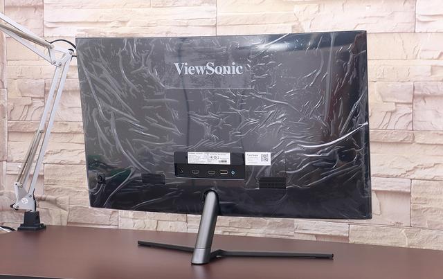 现在比较流行的窄边框设计,VX2758 也用上了,除了底部的边框比较明显以外,左上右的边框都收到屏幕里面了,息屏的时候有种无边框的错觉。屏幕下方的“ViewSonic”LOGO 是显示器正面唯一的装饰,个人感觉换成大家熟悉的三只胡锦鸟会更加接地气。