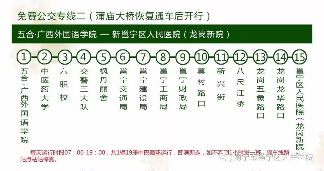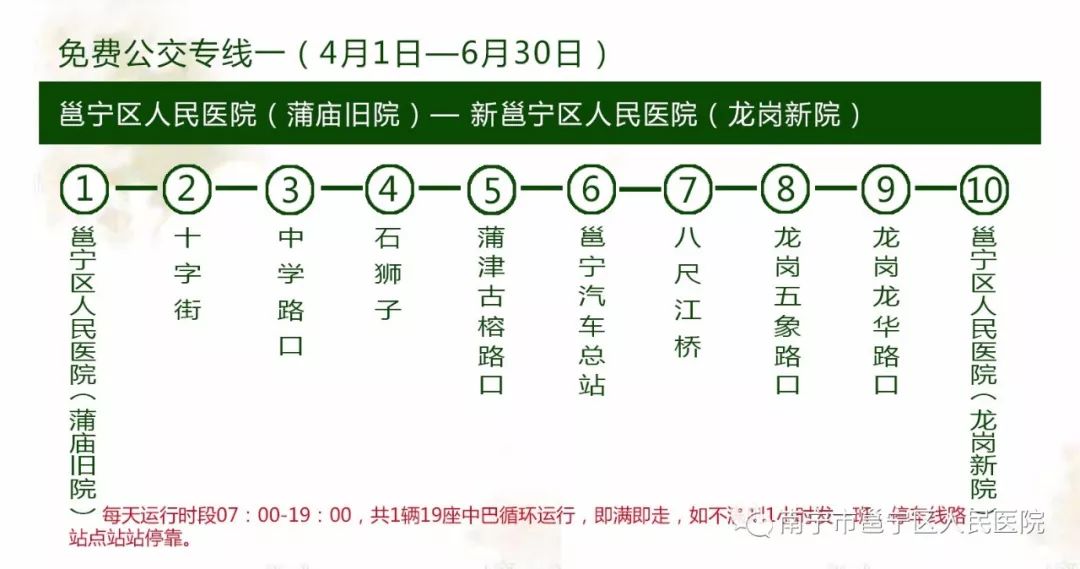 2.新院区投入运营后,为方便患者就诊,开通二条免费公交专线接送就诊市民。运行时间:2018年4月1日—6月30日,每天07:00-19:00。