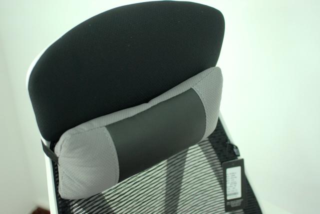 在靠背腰部处黑白调"听海"椅还设计有一个内置式腰托,这个腰托采用可升降调节设计,调整的幅度范围为8CM,这样的设计可以适配不用身高的用户,使用的时候可以使腰部贴合靠背,让腰部不再单独受力负累。