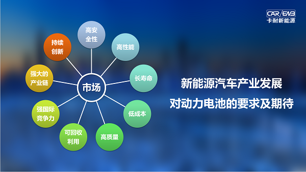 卡耐作为动力电池的供应商,如何确保我们成功,或者说我们认为一个电池供应商如何在这个行业里面长久立足,可能需要这几个方面,第一是我们坚持软包,因为我们认为软包是最安全、均衡性最好、未来的使用寿命是有保障的。第二是建设我们的研发基地,海外中心和五个生产基地,第三就是构建核心竞争力,在安全、质量、成本、技术、交付等方面全方位满足客户的要求,第四是创新商业模式,使我们跟整车厂和最终用户形成一个完整的利益共同体。最后就是通过梯次利用和再生利用,实现动力电池的价值最大化。谢谢大家!