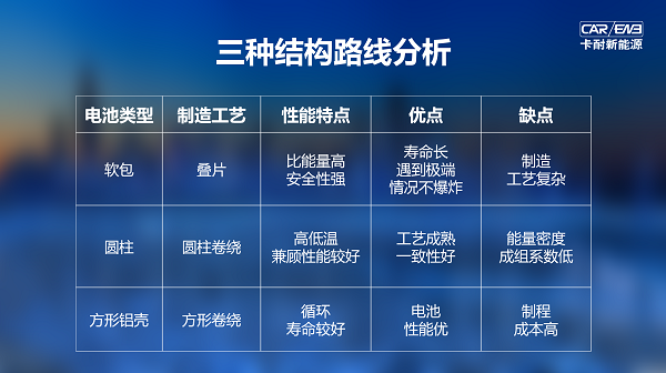 还有一个说不太清楚的,所有人都说不清楚,包括我自己也说不清楚,到底软包也好、圆柱也好,方壳也好,到底哪一个好,无论是谁都给不出来,软包也好,圆柱也好、方壳也好,各有各的特点,你到底更注重成本还是更注重哪一方面的性能,很难分出优劣,在这个方面整车行业你问做软包的肯定给你讲一堆软包的优点,做硬壳的会讲硬壳的优点,这是整个行业没有办法达成共识的。但总体来讲,要想追求高能量密度,包括乘用车,可能软包和方壳用得多一点,追求成本,圆柱用得多一点,这个未来会成为一个很持续的课题。