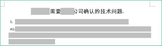 在诱饵文档被打开后,可以看到,文档标题为“XX需要XXX公司确认的技术问题”,正文内容也全部都是与相关“技术问题”有关的内容。这样的邮件,其社工手法显然是经过非常精心设计和策划的,一般人很难识破。