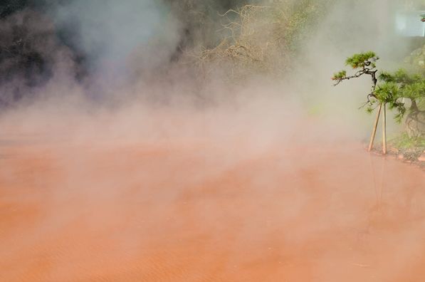 泛着血红色的泉水,是“血之泉地狱”最奇特的地方。这好似“地狱”的血红色泉水,其实是得益于水中富含的铁元素。据悉用温泉的红黏土制成的血池软膏对治疗脚气很有效。