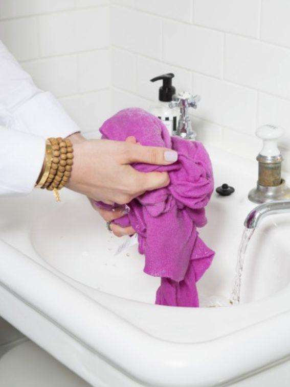 用于洗碗的丝瓜瓤或白洁布也是去除衣物表面毛球的好帮手,只需将其用水打湿,拧干,用粗糙的一面刷洗衣物表面即可。