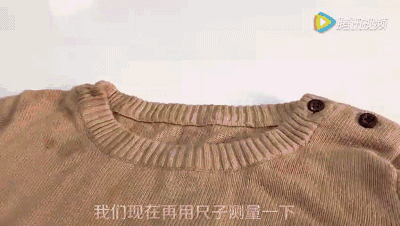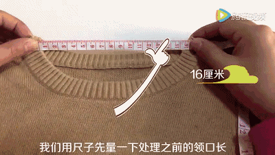 平铺开,用尺子一量,领口明显缩小了,重新恢复毛衣的弹性!像袖口、下摆等变松,也可以用这种方法处理哦~