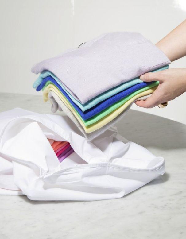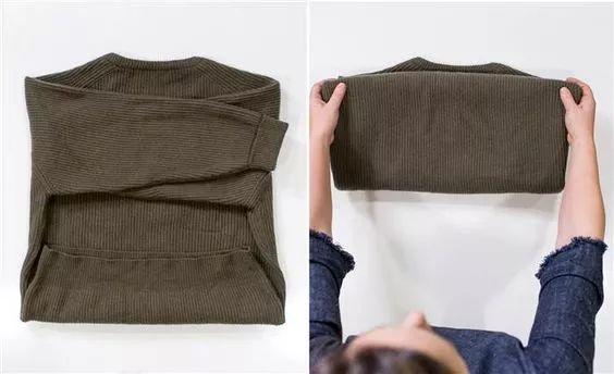 如果你要放在抽屉或者衣物收纳箱中,可以把毛衣卷起来立放,这样毛衣受力面积小不容易压坏,而且不会有折痕了。