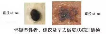 划重点:因为很多先天性小痣或巨痣本身就比较大,超过6mm,或天生就不规则、不对称。所以看色素痣是否恶变,主要是看变化。