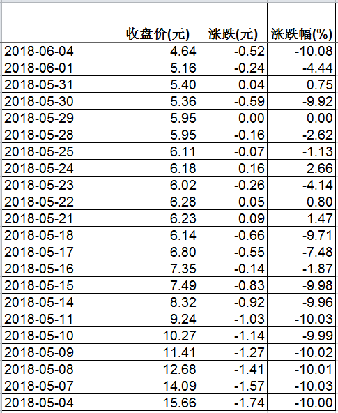 坏消息总是连锁的。5月4日,结束重大资产重组事项的奥瑞德一复牌便迎来跌停板,当天股价跌10%至15.66元。直至5月15日,该股票连续共迎来8个跌停板。6月4日又一个跌停板后,奥瑞德股价已经跌至4.64元/股。