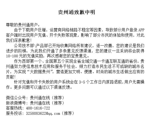 贵州通在线发布致歉