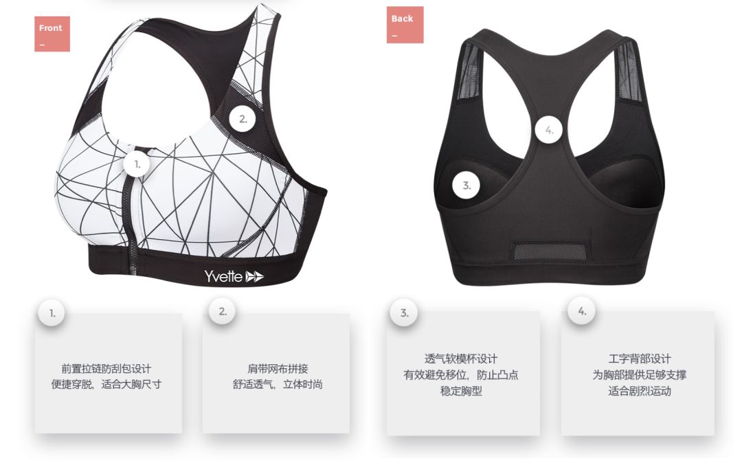 增强透气排汗的肩带网布拼接;前置拉链防刮包,便携穿脱;后背工字设计,即便剧烈运动也能提供足够支撑,底围特别弹力加宽设计,增加包裹力,不易翻卷......