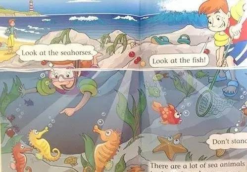 我看见海马,螃蟹,海星,还有各种各样的漂亮的鱼。
