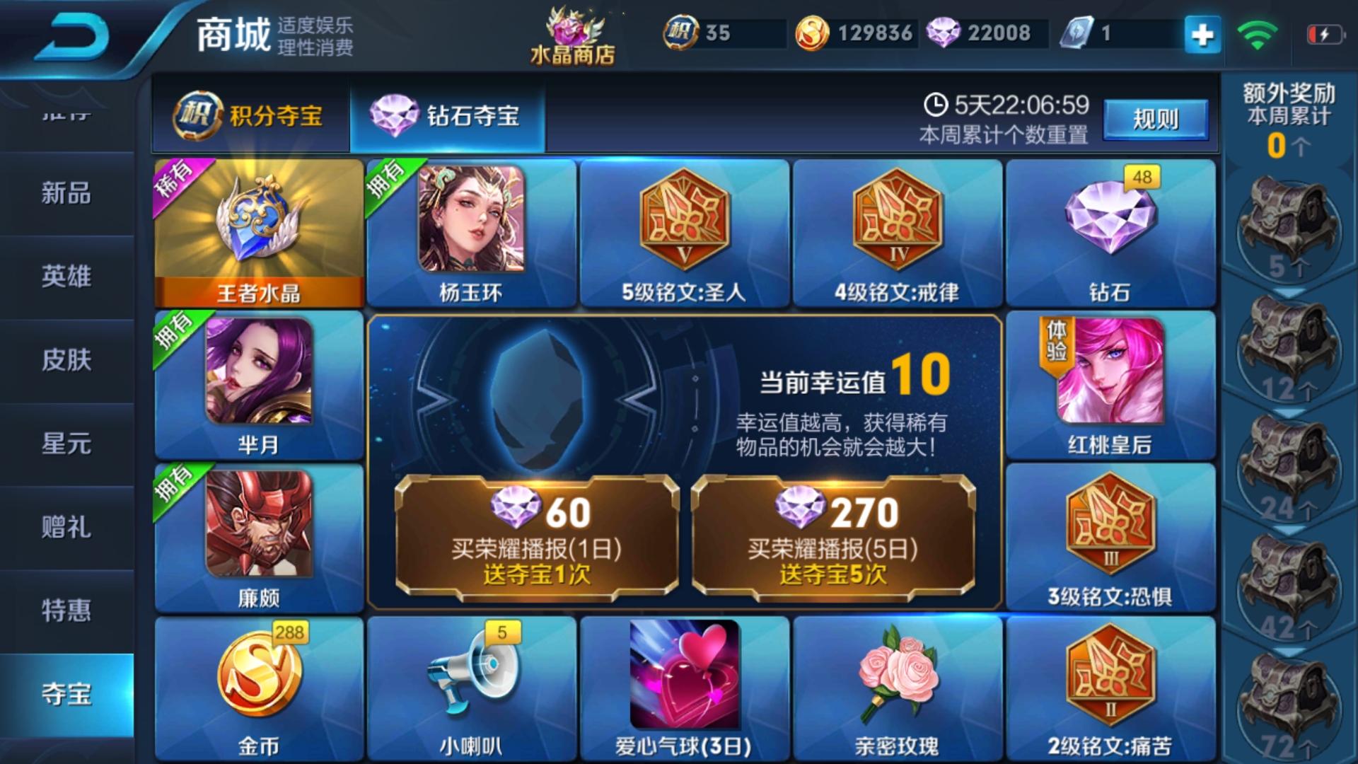 第二个方法:钻石/积分夺宝
