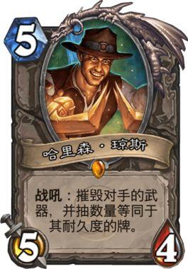 最后,我来分析下卡组中的科技牌,首先是焦油爬行者这张牌,一张优质嘲讽,同时也不吃牧师的疯狂药水和密教暗影祭司,其次是哈里森琼斯,可以针对术士和法师*器武**,通过天梯中这两个职业数量减少了的话,我们可以考虑把他换成别的牌,同时也可以把焦油换成温泉守卫或者游荡恶鬼,不过鉴于目前青玉德的数量锐减,恶鬼通常能撕到的也就是牧师的心灵之火和术士的1费法术了。
