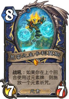 接下来要谈的是卡组中的回血牌了,总共有四张,分别是治疗之雨、锦鱼人、萨满DK和蛮荒之主卡里莫斯。有些玩家认为卡组中的回血牌带的有点多了,但我认为在当前环境下这个配置应该是最优的了,当然,如果未来大家感觉环境慢下来了的话我们也可以考虑加入更多的青玉套件。