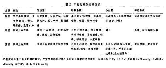 一旦疑诊儿童发生严重过敏反应,应对过敏反应进行初步分级: