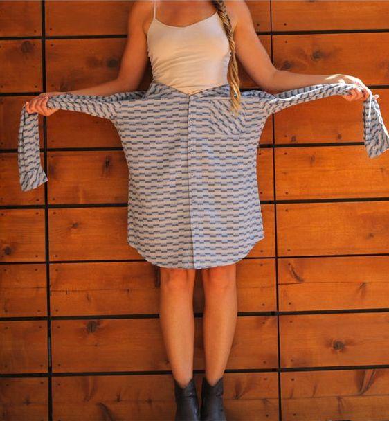谁说衬衫一定要当上衣穿啦,衬衫也可以穿成裙子。
