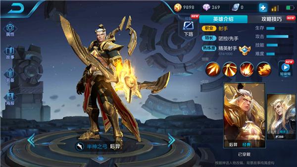 后羿是王者荣耀中资历较老的英雄,经过重做后,当今版本的后羿可以说是射手中的佼佼者,深受玩家青睐。后羿的攻速是所有英雄中最快的,并且伤害不俗,可以在团战中打出爆炸并且持续的伤害,最令人恐怖的是他大招超强的控制能力,能让敌方欲哭无泪。本篇攻略将带领大家全方面了解这位强势的射手英雄——后羿。