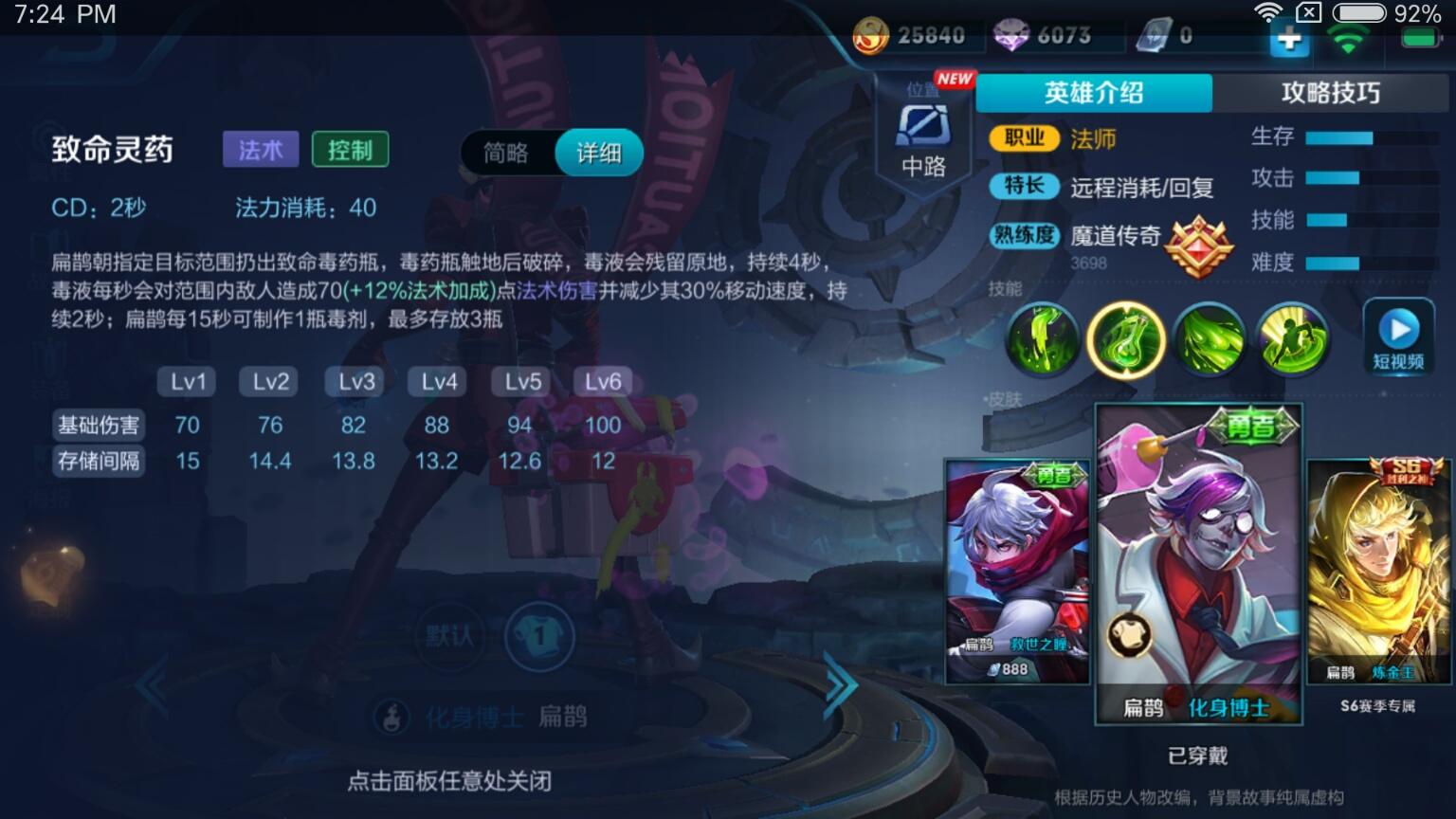这期要跟大家分享的是素有“绝命毒师”之称,王者峡谷里善用毒功的顶尖高手,毒王扁鹊。可以看到,扁鹊的初始属性显得平平无奇,血量堪比花木兰和姜子牙这样的脆皮,移速也是较低的350,抗性方面也没什么突出的项目,总而言之,扁鹊是一个乍看属性很平庸的英雄,关于其定位也是比较微妙,既有人用他来打辅助,也有人用他来充当C位,但扁鹊的伤害机制又比较特殊,这让他在团战中的作用显得摇摆不定。
