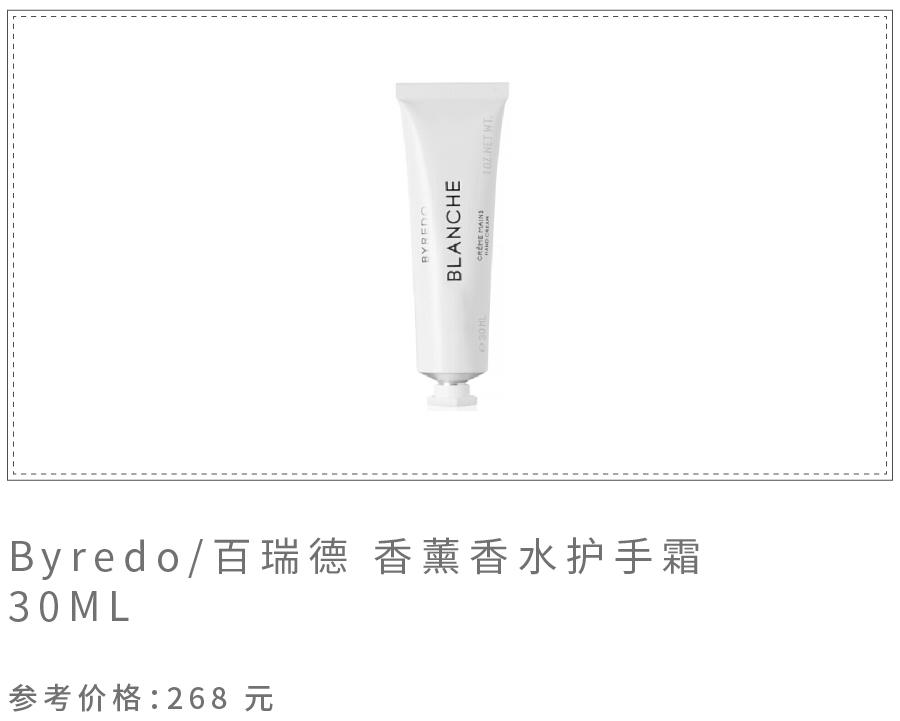 如果除了保湿滋润以外,你还对手霜的包装、味道有更高的要求,那我推荐 Byredo 护手霜。贝嫂曾在 Facebook 上说“我的包里可以没有钱包,但是不能没有 Byredo 护手霜”,可见这支护手霜魅力真不小。