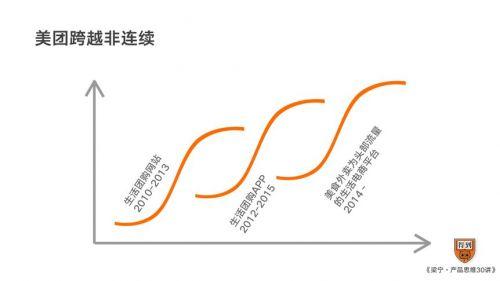 携程酒店跨越了自己从PC到移动端的非连续,走出了他企业的第二条曲线,并且获得了极大的增长。 但美团服务的是携程的价值网不服务的用户。所以给了美团机会,走出了一条颠覆式创新的第三条曲线。