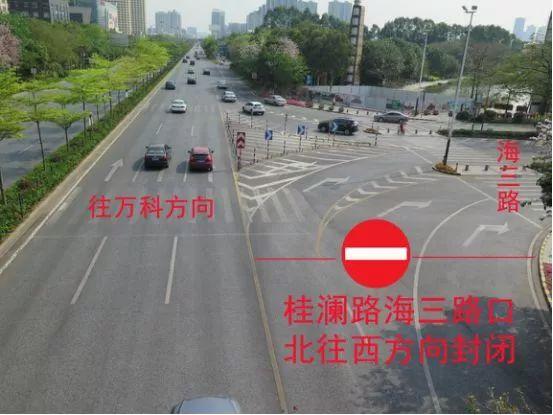 3、桂澜路海三路口北往西方向封闭,禁止桂澜路车辆右转入海三路。