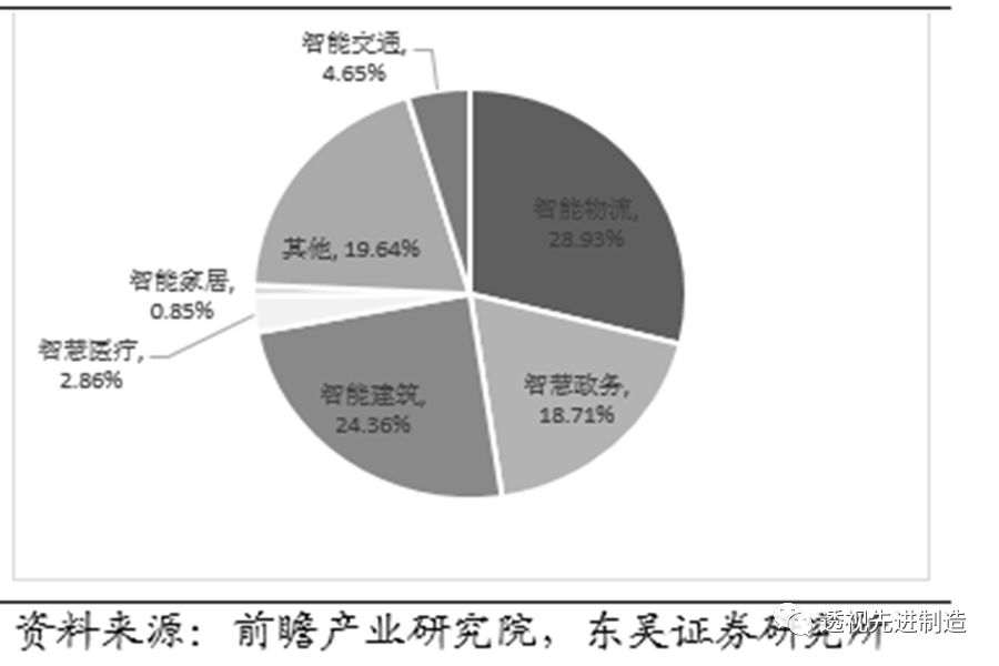 2017年12月,由国家信息中心主办的国家新型智慧城市创新发展论坛在北京举行,会上发布了《新型智慧城市发展报告2017》,报告显示我国新型智慧城市发展具有三个特点:一是整体势头良好;二是尚处于起步阶段;三是资源整合趋势逐步显现。发改委2018年3月发布的《关于实施2018年推进新型城镇化建设重点任务的通知》中提到:分级分类推进新型智慧城市建设,以新型智慧城市评价工作为抓手,引导各地区利用互联网、大数据、人工智能推进城市治理和公共服务智慧化,建设城市空间基础地理信息数据库,力争所有市县整合形成数字化城市管理平台。根据前瞻产业研究院的预测,到2022年,我国智慧城市市场规模将达32402亿元,市场结构中智能物流、智能建筑、智慧政务占比最大,分别为28.93%、24.36%、18.71%。